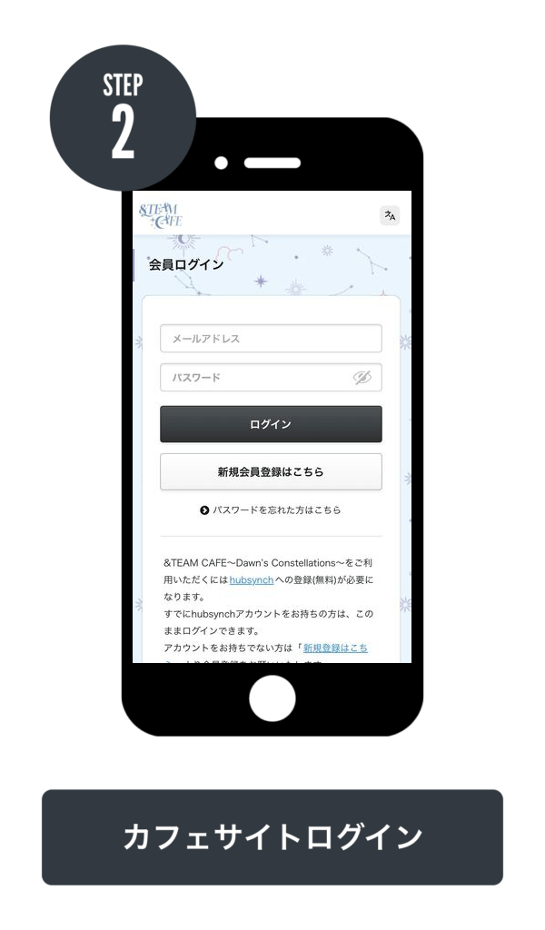 ※カフェサイトのアカウントをお持ちでない場合は、新規会員登録を行ってください。