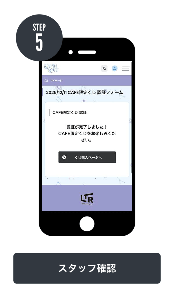 QRコード認証が完了しましたら、認証画面をスタッフにお見せください。